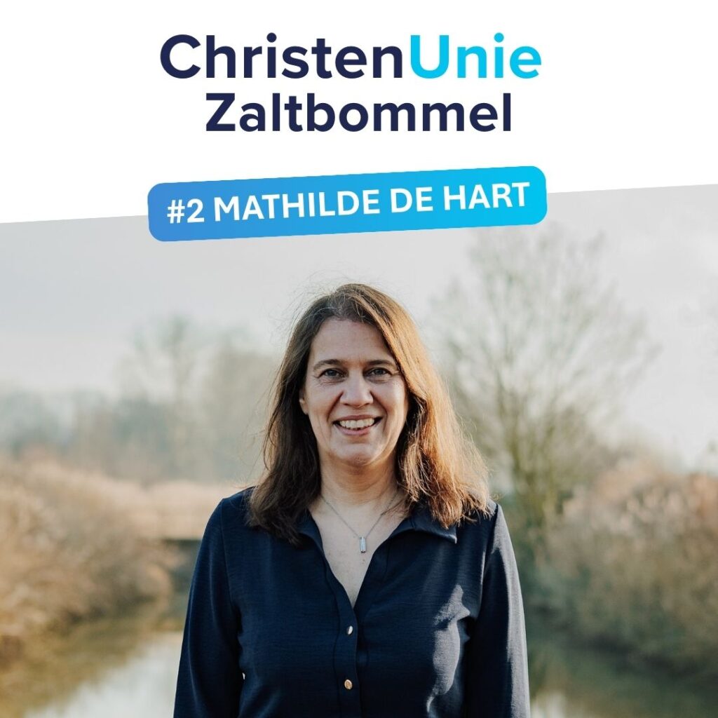 Ik ben Mathilde de Hart, 53 jaar, getrouwd en moeder van drie dochters. Ik ben opgegroeid in de Vergt, woonde als tiener enkele jaren in Zuilichem en keerde daarna weer terug naar Zaltbommel.